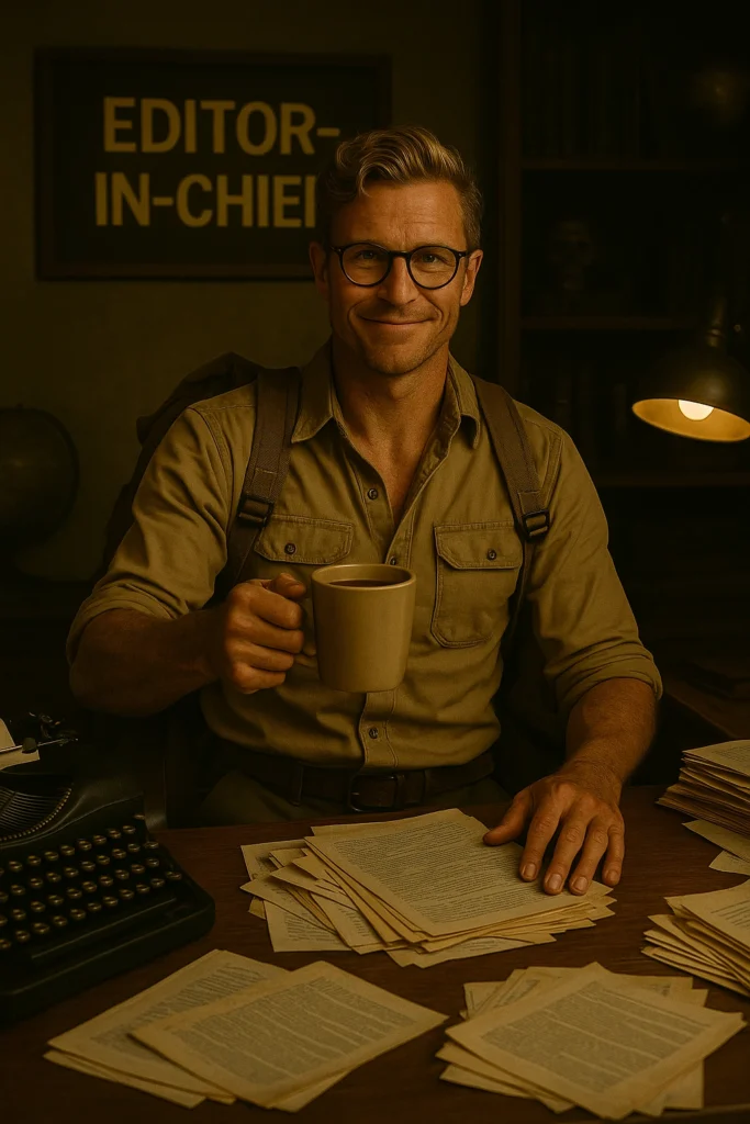 Walter is more than an editor. He’s a force of narrative gravity, pulling together rogue ideas, half-finished headlines, and primate-driven nonsense into something greater, a satire engine disguised as a news site.